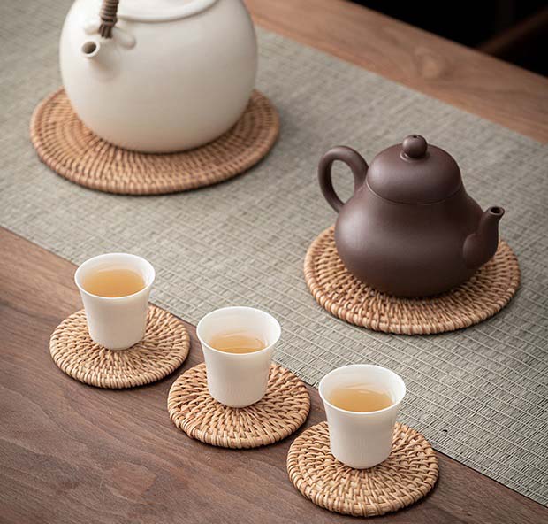 不同的茶类有不同的冲泡方法,即使是同一种茶类也有不同的冲泡方法,在众多的茶叶中,由于每种茶的特点不同,在冲泡时要根据不同的特点采取相应的方法,以发挥茶叶本身的特色。但无论泡茶技艺如何变化,泡茶次序都相同,具体冲泡次序如下: 1.清具:清具时用热水冲淋茶壶,包括壶嘴、壶盖,同时烫淋茶杯。然后需要将茶壶、茶杯沥干,这样不但可以清洁伙茶器具,还可以提高茶具温度,使茶叶冲泡后温度相对稳定。 2.置茶:按茶壶或茶杯的大小,用茶匙置定数量的茶入茶查或茶杯中。 3.冲泡:当置茶入茶壶或茶杯后、按照茶与水的比例将开水冲入茶壶或茶杯中。在民间常用“凤凰三点头”之法,这种方法不但可以表示主人向宾客点头,欢迎致意,还可使茶叶和茶水上下翻动,使茶汤浓度一致。冲泡时除乌龙茶冲水须溢出壶口、壶嘴外,通常以冲水七分满为宜。 4、敬茶:敬茶时主人要脸带笑容将茶用茶盘送给客人,如果直接用茶杯奉茶,应避免手指接触杯口。正面上茶时,双手端茶,左手作掌状伸出,以示敬意。如果从客人侧面奉茶,若左侧奉茶,则用左手端杯,右手作请用茶姿势;若右侧奉茶,则用右手端杯,左手作请用茶姿势。这时,客人可用右手手指轻轻敲打桌面或微微点头,以表谢意。 5.赏茶:如果饮的是高级名茶,茶叶冲泡后,应先观色察形,接着闻香,再嚼汤尝味。尝味时应让茶汤从舌尖沿舌两侧流到舌根,再回到舌头,反复2-3 次,以晶尝茶汤的清香和甘甜。 6.续水:一般当已饮去2/3壶的茶汤时,就应续水,如果将茶水全部饮尽时再续水,续水后的茶汤就会淡而无味,续水通常2-3次即可。如果还想继续伙茶,应该重新冲泡。 |